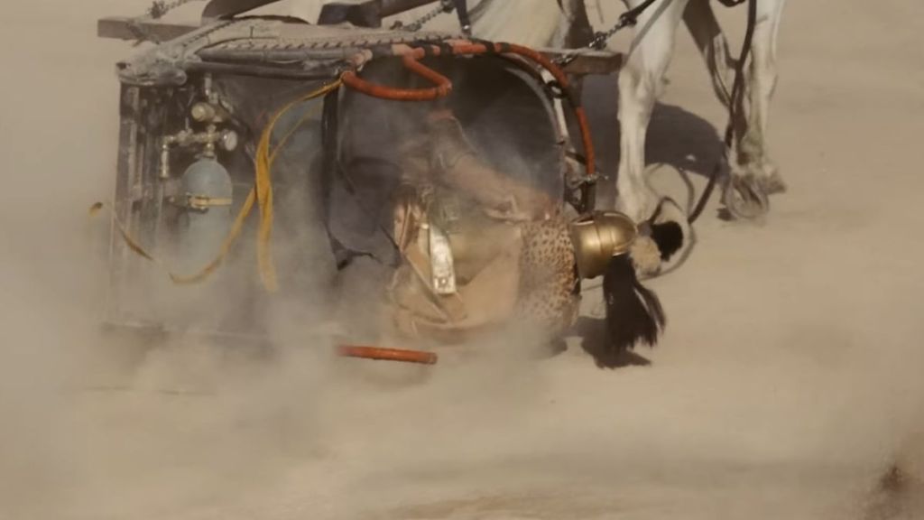 A gas canister is clearly visible on a chariot during a battle scene, a major production oversight that stands out but never distracts from the film’s intensity. If anything, it shows that the chariot needed some extra horsepower.