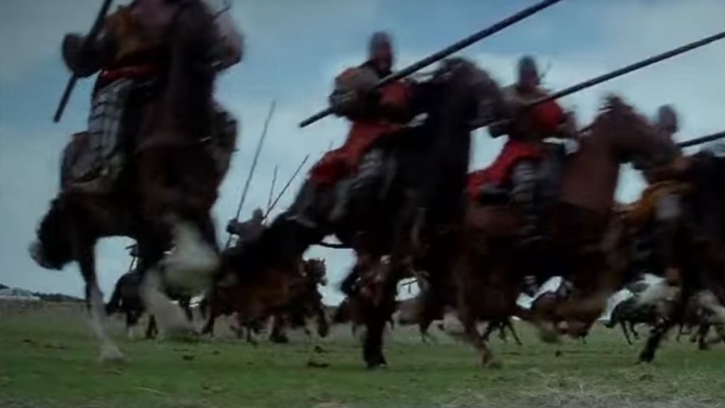 A modern car is visible in the background during a battlefield shot, an anachronism that’s become a classic example of harmless movie mistakes. Fortunately, the vehicle almost blends with the background.