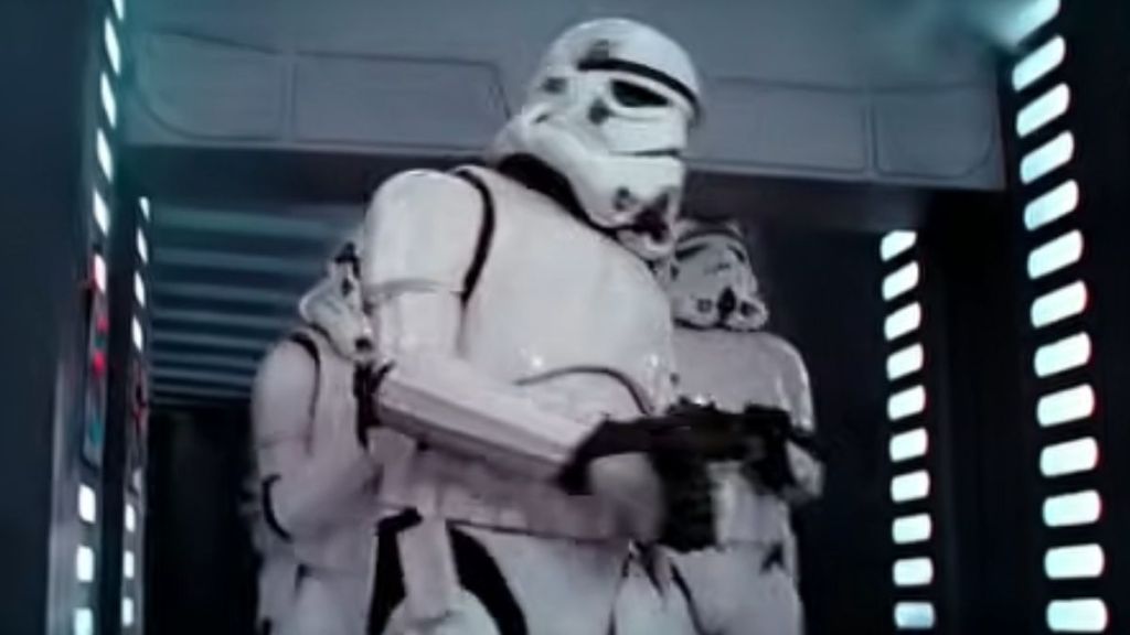 A stormtrooper hits his head on a doorway, a blooper that became so beloved it was later acknowledged in official releases.
