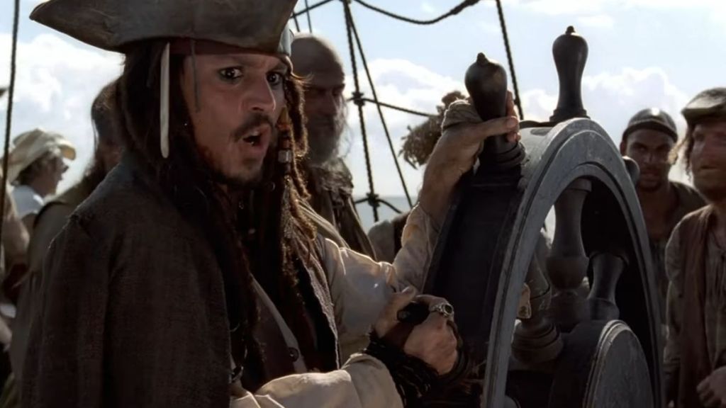A crew member wearing a cowboy hat appears briefly in the background, a funny mistake that fans enjoy spotting. He might just be a very fashionable pirate.