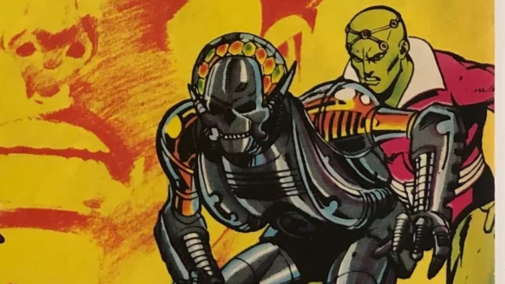 Usually, Brainiac is an organic being with a machine mind that grants him extreme intelligence, which he used to overthrow the computer tyrants of his home world Colu. However, in the early 1980s, writer Marv Wolfman briefly revamped Brainiac to make him even more robotic. Shortly before the Crisis on Infinite Earths reboot of the DC Universe, Brainiac took the form of a skeletal robot made from living metal, his most frightening form.