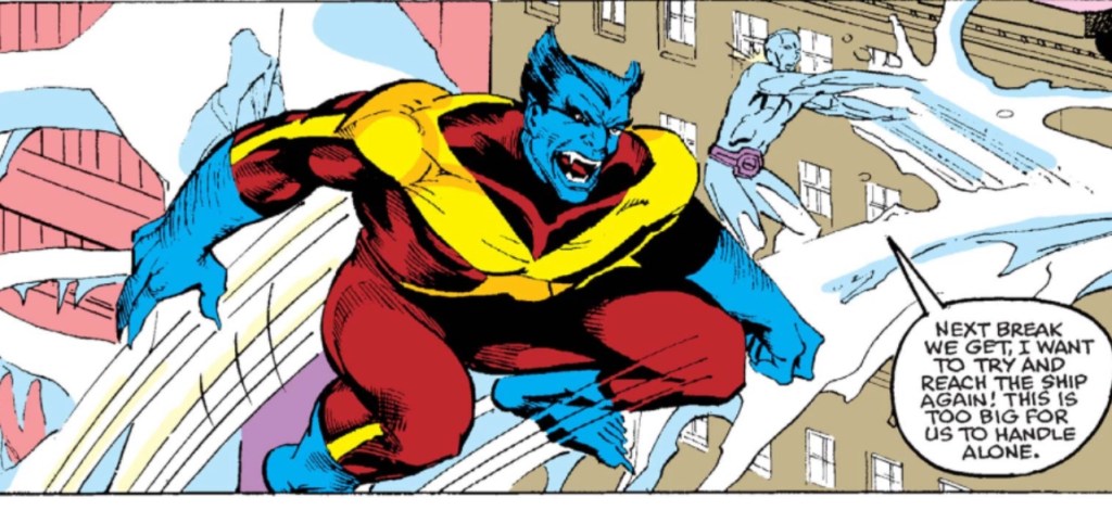 Even movie fans probably know that Hank McCoy has two looks as the Beast. In one, he’s mostly humanoid, albeit with large hands and feet. In that mode, Beast wears superhero tights, including a brown and yellow suit that he can’t quite work as well as Wolverine. Hank’s other mode came after he performed experiments on himself, which first gave him grey fur and later blue fur. He sometimes gets a stylish coat when he’s blue and furry, which Grammer had in X-Men: The Last Stand.