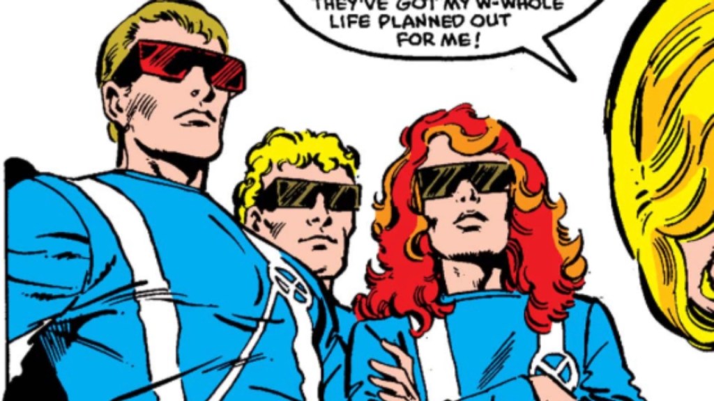 Fortunately, Marvel dropped the conceit, but not before forcing us to see Scott in his mutant buster gear, a horrible blue sweat suit that seems designed for a light aerobic workout or doing nice breakdancing moves.