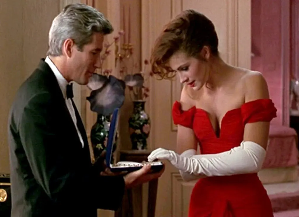 Richard Gere playfully snapped the jewelry box shut on Julia Roberts’ fingers spontaneously on set. Her genuine laughter sold the moment, which the director kept in the final cut.