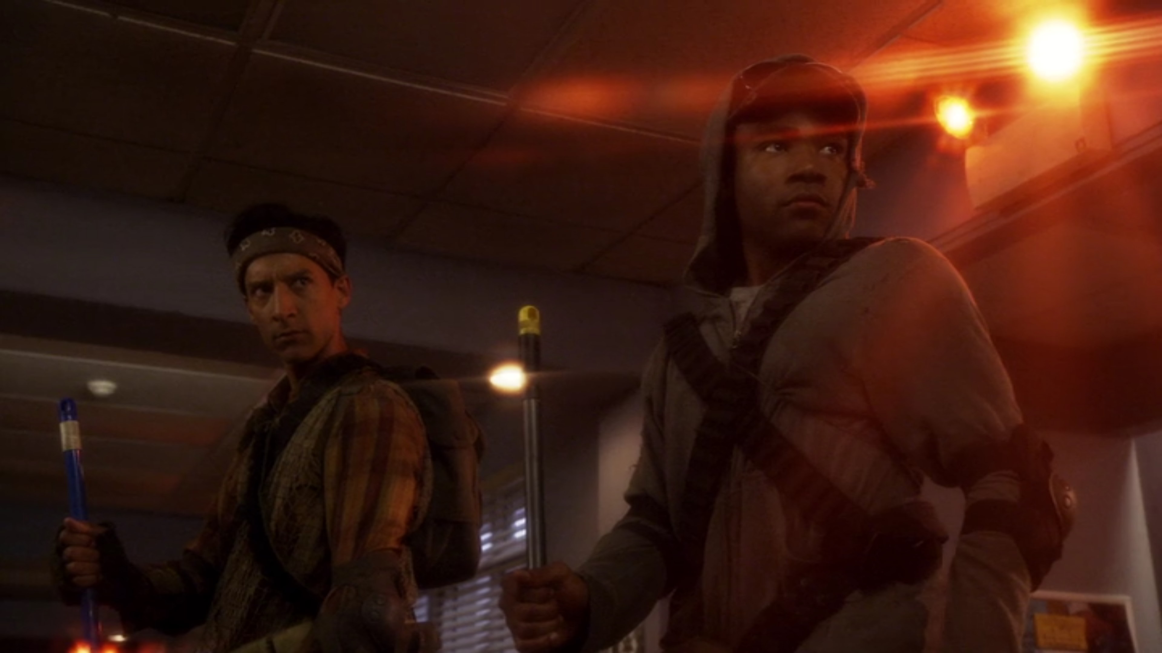 There’s a whole lot of references, but just to name a few: The Warriors, 28 Days Later, The Matrix, Die Hard, and the films of John Woo are all alluded to. Also, though I say “action homage,” the fact is this episode—another brilliantly directed by Justin Lin—is an honest-to-goodness, great comedy-action short film.