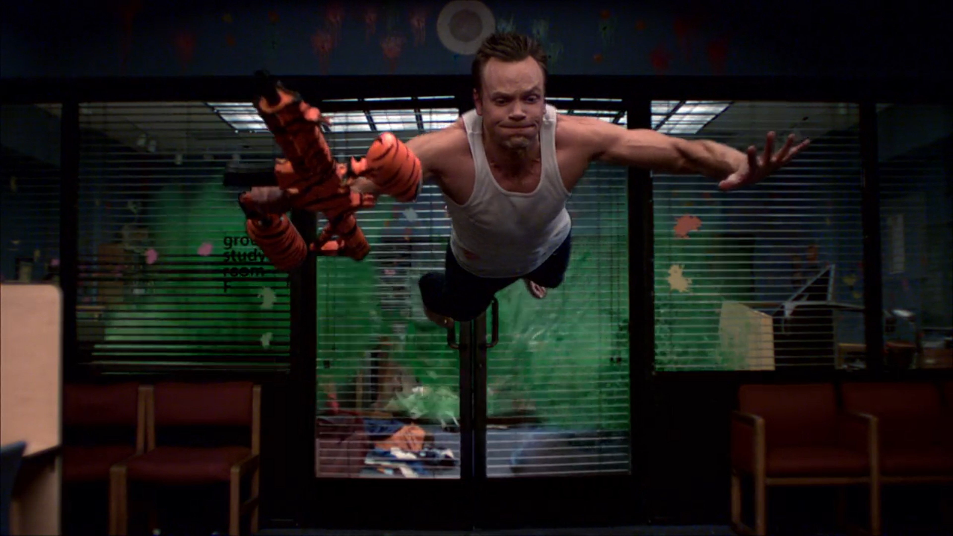 This is the one that blew the minds of everyone who had followed the show to this point. It’s a campus-wide paintball war and the characters are motivated to take it seriously because the prize for the winner is priority registration, i.e., you get first choice of all your classes for next semester. The result is the total destruction of Greendale as Community’s humble sitcom origins are all but left behind in favor of a paintballs-to-the-wall action homage.