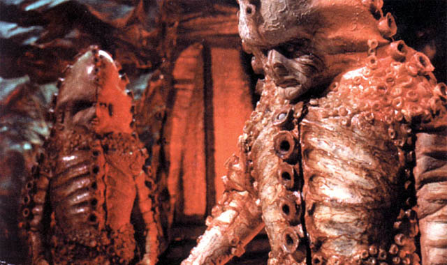 But those are not the aliens for which Doctor Who is remembered. Doctor Who is remembered for creatures like the Zygons, evil-looking shapeshifters made entirely of tentacles, the massive rhinoceros faces of the Judoon, the fish vampires of “The Vampires of Venice”, the giant green clawed babies of the Raxicoricophallapatorians, Bo’s giant face, carnivorous shadows, and last but not least, the hideous mutated cycloptipus you’ll find behind the steering wheel of a Dalek.